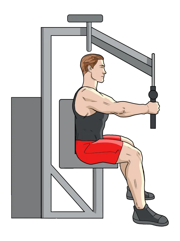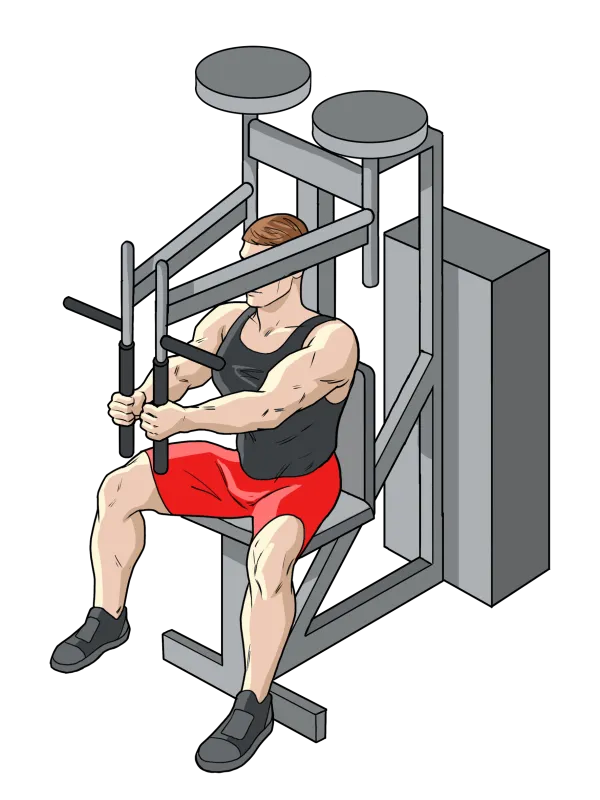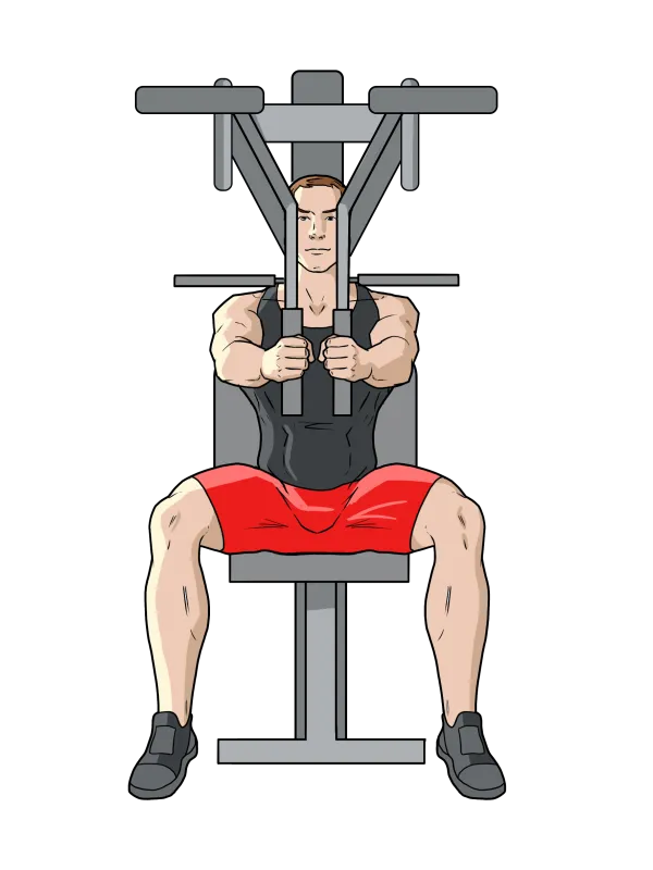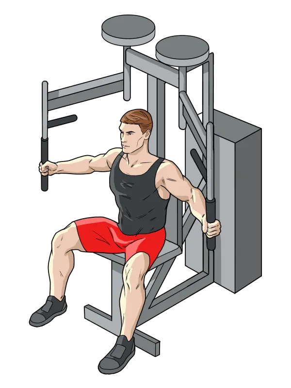 Сядьте в тренажер Peck Deck.