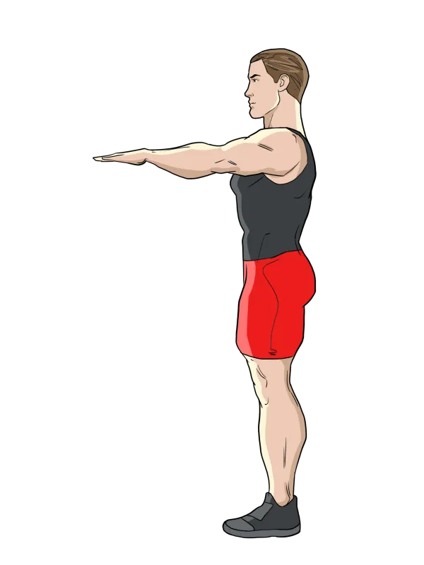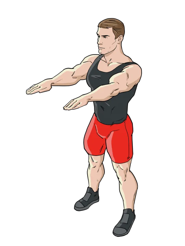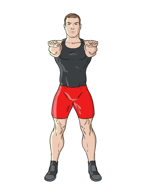 Вставьте прямо, ноги на ширине плеч.