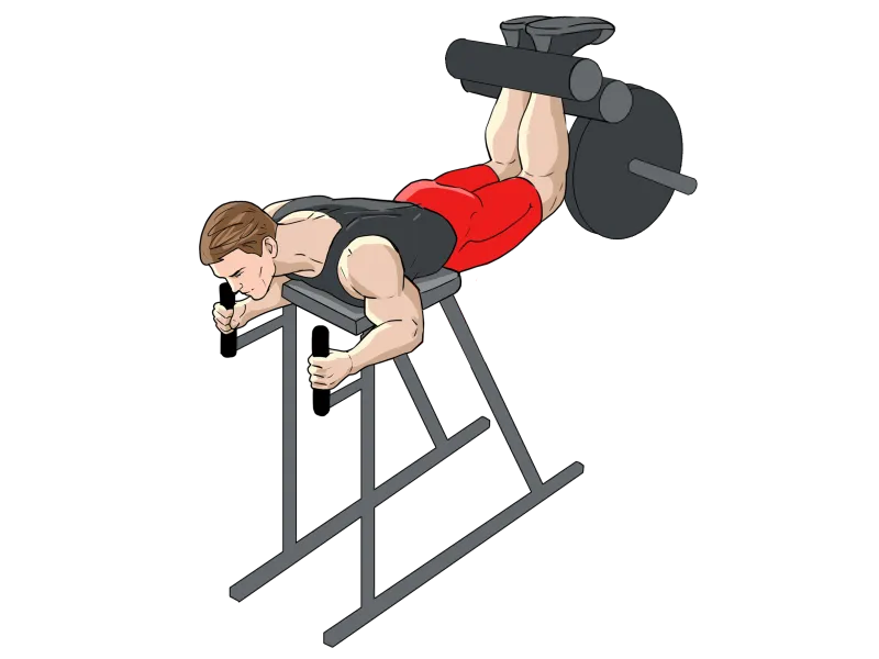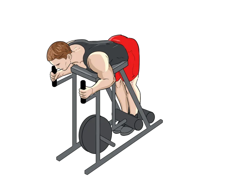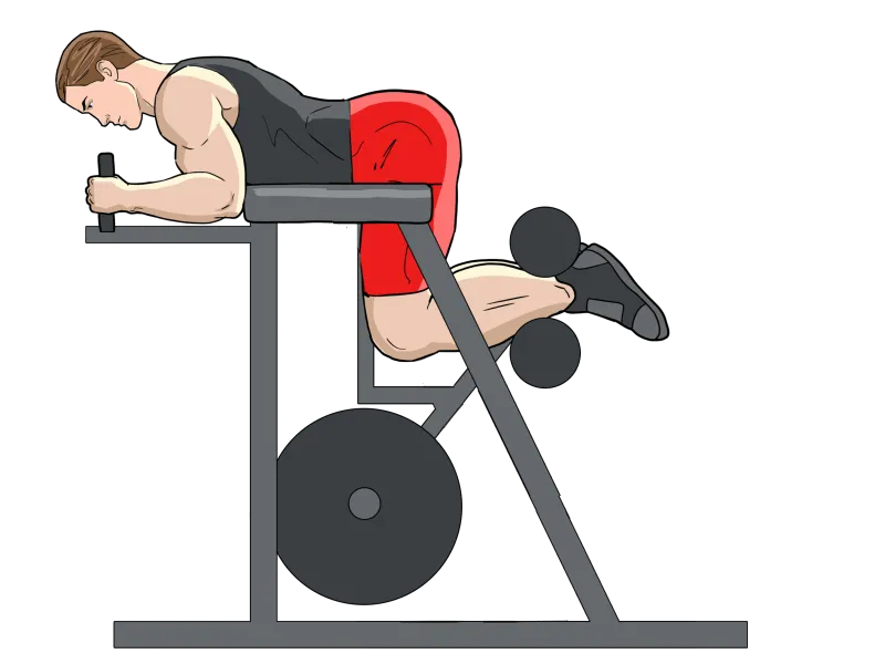 Выполняется в специальном тренажере для обратной гиперэкстензии.