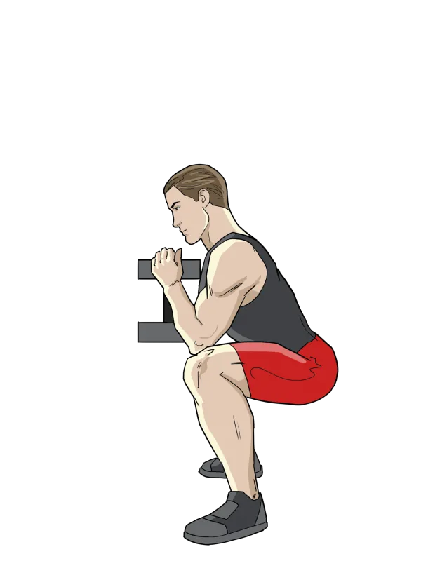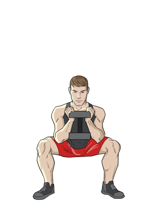 Приседания Гоблет с гантелей — это эффективное многосуставное упражнение, направленное на проработку ягодичных мышц, квадрицепса бедра и кора, выполняемое с использованием гантели, удерживаемой перед грудью.