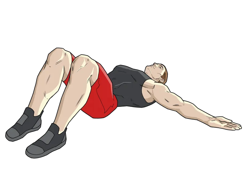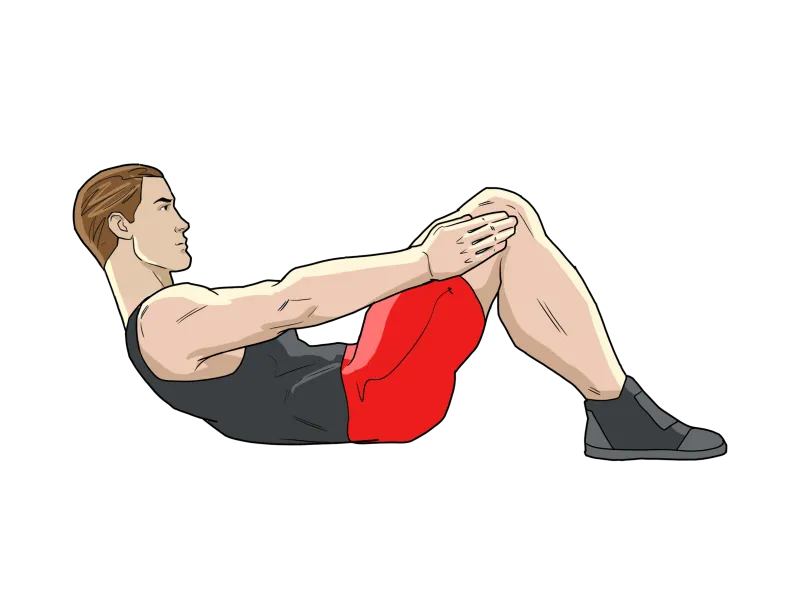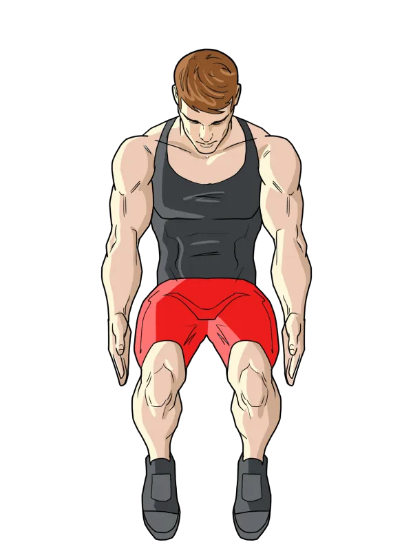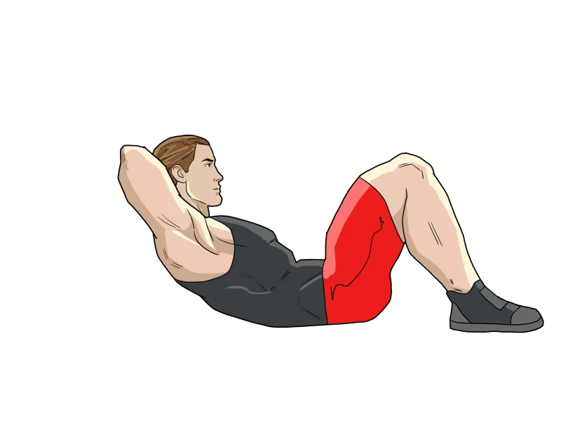 В верхней фазе грудная клетка округлена, а руки достигают низкого параллельного полу положения, помогая предельному сокращению мышц живота.