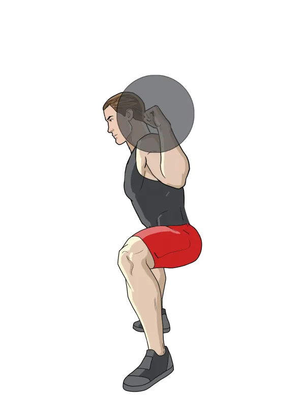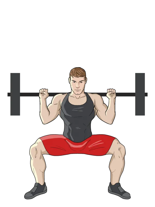 Продолжайте движение вниз, пока бедра не станут параллельны полу или чуть ниже (в зависимости от гибкости и уровня подготовки).