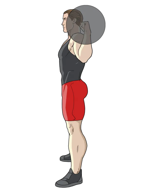 Избыточное разгибание поясницы и подъем передних нижних ребер в верхней фазе недопустим. Нужно стремиться удерживать нейтральное положение позвоночника.