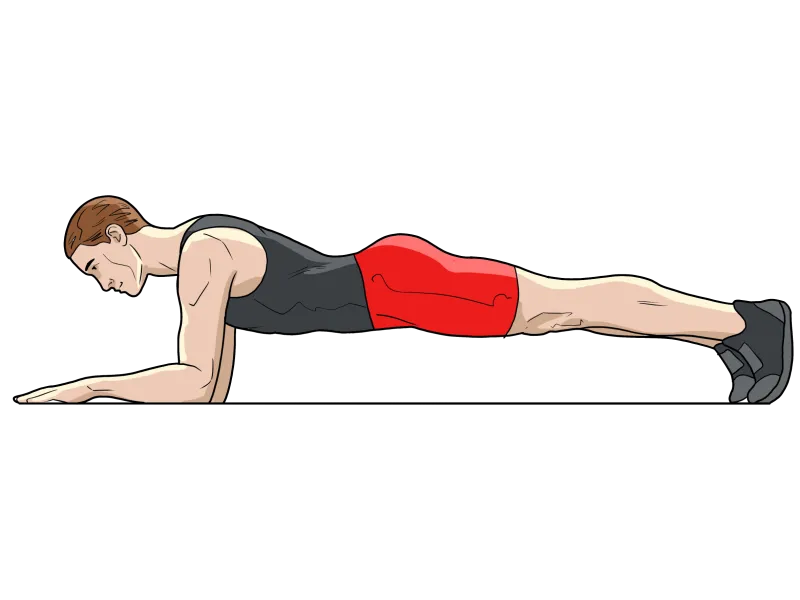 Примите положение планки, опираясь на предплечья и носки.